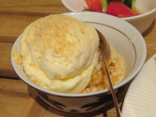 伝統的なトルクメン菓子、シェクシェキと、アイスクリームです。ちょっと甘めの砕いた焼き菓子が入っていて、日本にありそうでないお菓子ですね!アイスクリームが全然溶けない~!!濃厚でおいしいアイスクリームでした♪
