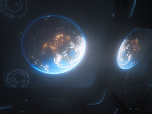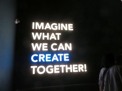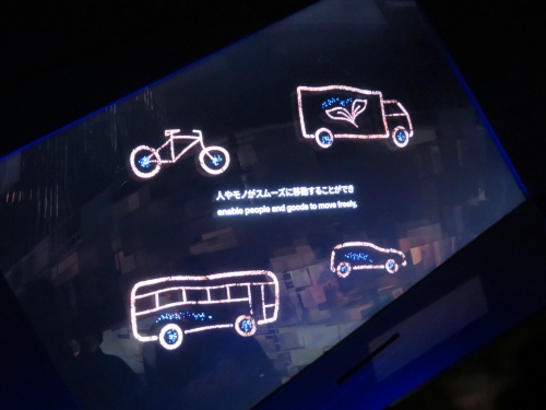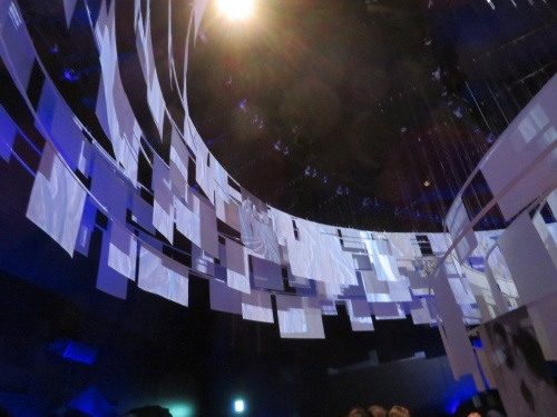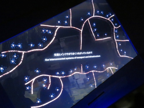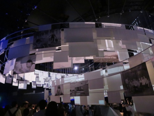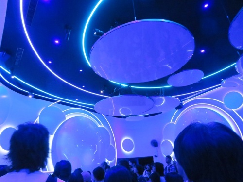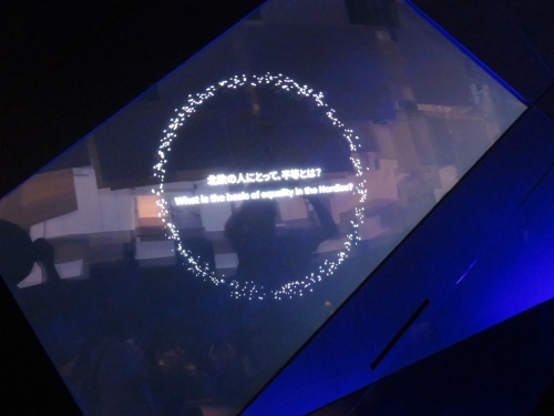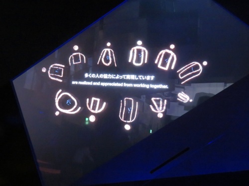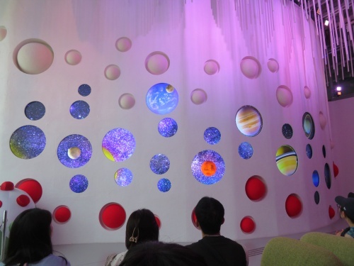 中に入ると、壁一面に丸い液晶画面が埋め込まれていました。