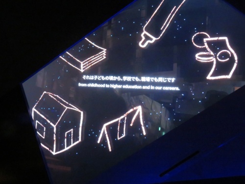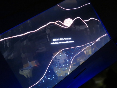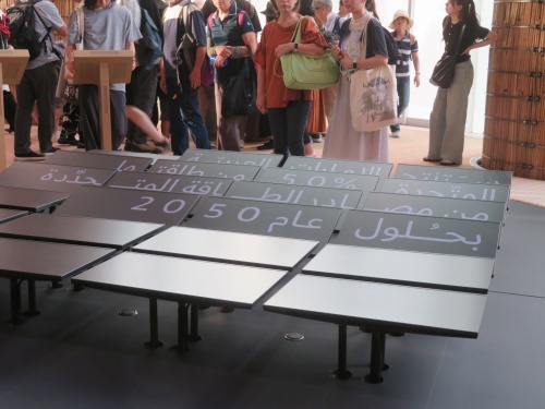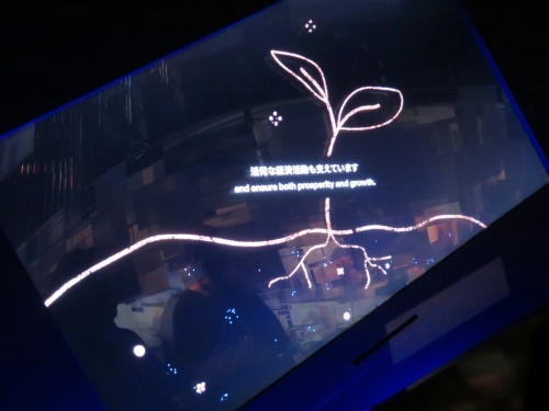 アラビア文字?が浮かんでくる太陽光パネルが展示されていました。