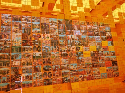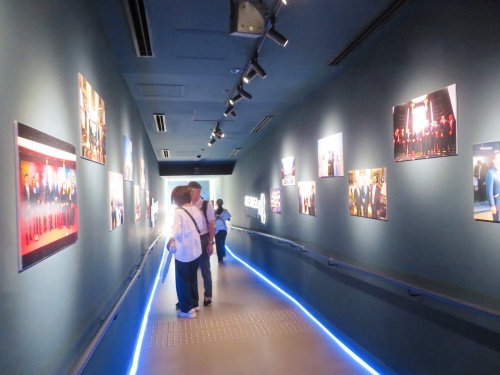 展示室を抜けて、帰りの通路ですが、今度はオレンジの雰囲気です。