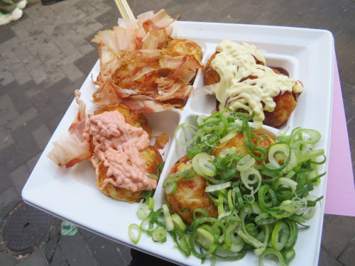グリコの看板、かに道楽、なんばグランド花月、わなかのたこ焼き4種(ソース、醤油、明太マヨ、ネギ塩)です!