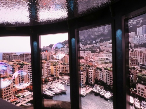 壁一面に埋め尽くされた画面でモナコのさまざまな景色を楽しみます。