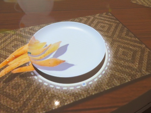パネルに映し出されている女性がしゃべっています。近未来的!!