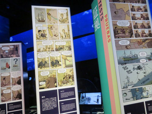続いては、隣のスペインパビリオンに行きます。こちらも海底のイメージでしょうか。室内が暗いです。