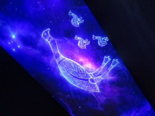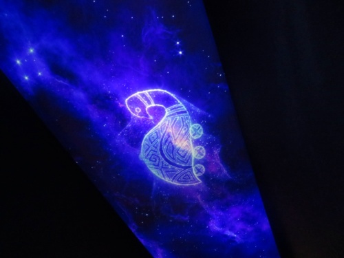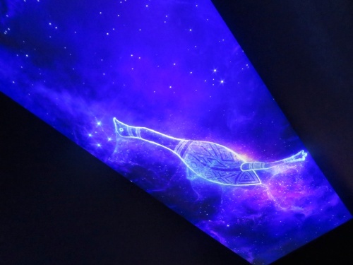 次の部屋に行く前の通路の天井に星座が浮かんでいました。星座をもとにしたエミューです。