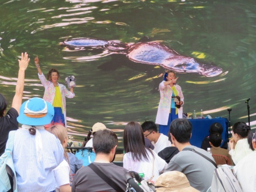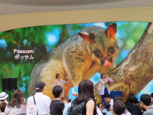 外に出たら、女性二人組がステージでオーストラリアクイズを行っていました。
