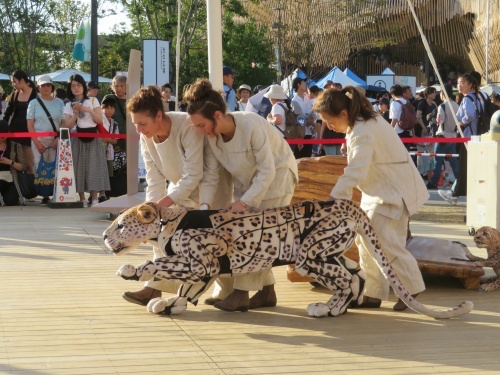 途中のステージでは、ヒョウの模型を使って劇が行われていました。