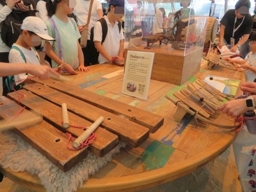 2階に上がって映像を楽しめるものがありましたが、順番がこなさそうだったので諦めて、庭に出て、木でできたおもちゃを見てまわりました♪