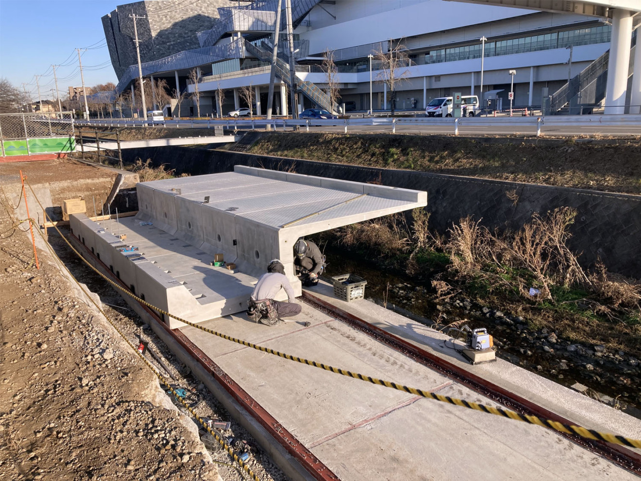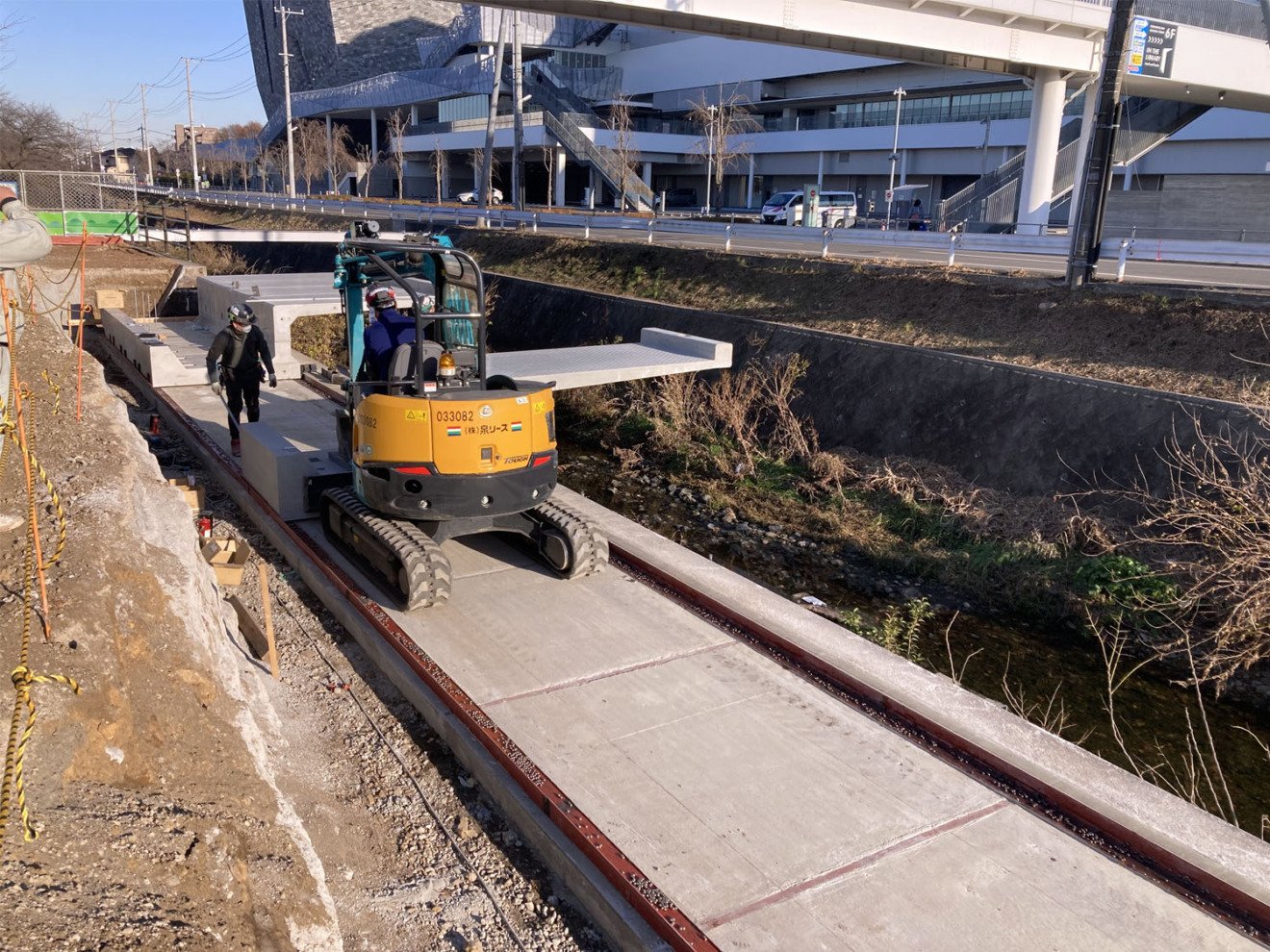 BOXカルバートの実績もありますので、製品荷下ろし、移動が難しい現場は、ぜひ、マルチスライド工法をご検討ください。