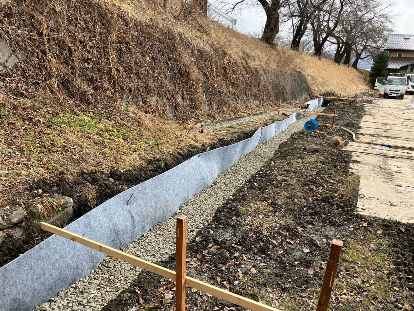工期が短いため、「FQ側溝」の強みである基礎・インバートの打設が不要な点をメリットに感じていただき、自由勾配側溝から変更して使用していただきました。