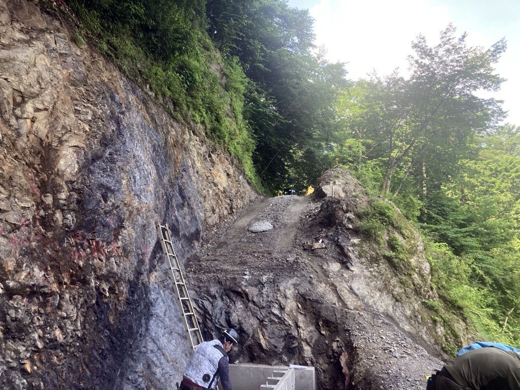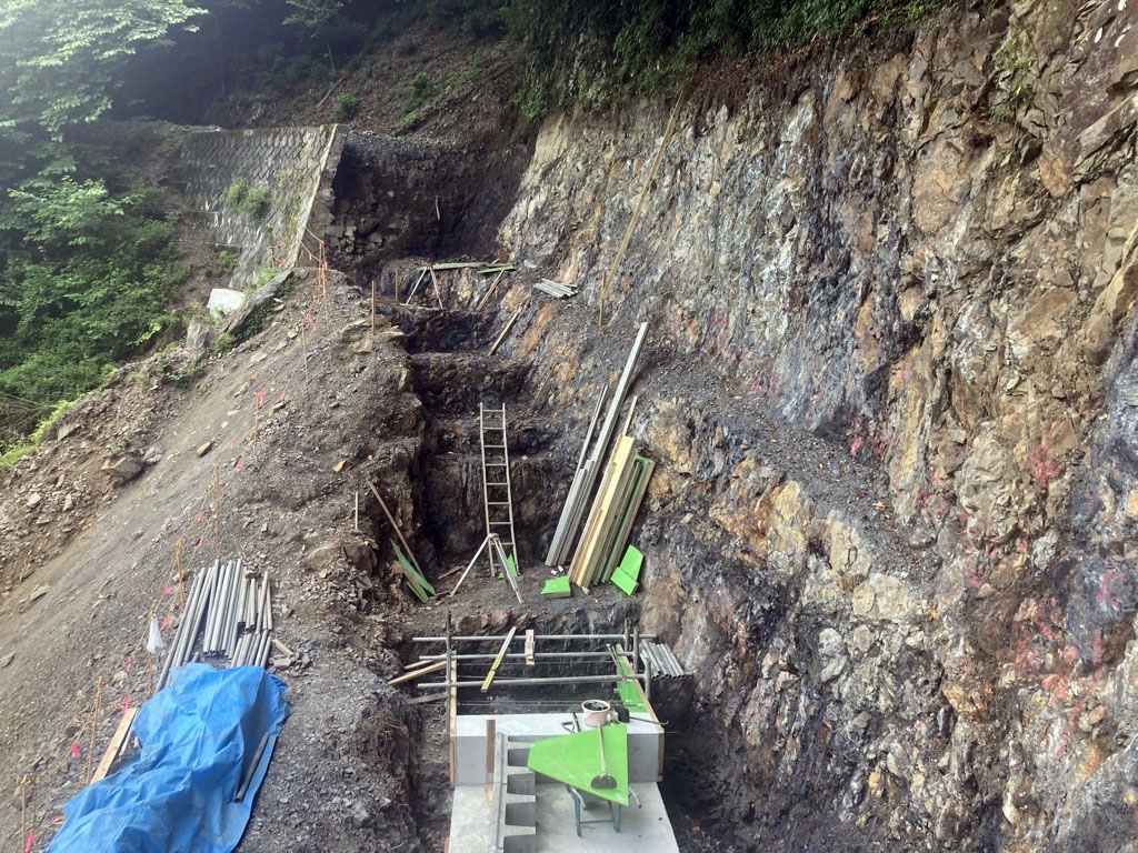 施工現場は携帯電話が届かない、山の奥の森林監理局が管理している道路で、崩落していました。
